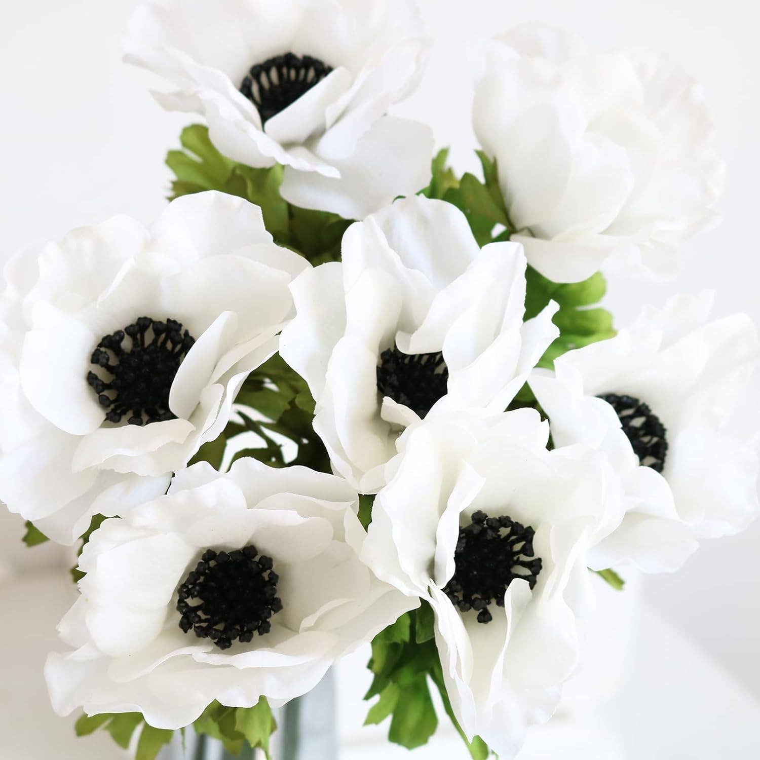 Silk fabric flowers are the permanent botanicals you want for your elevated floral designs, and this classically beautiful white faux Anemone with a black center is no exception. Minimum order of 6.