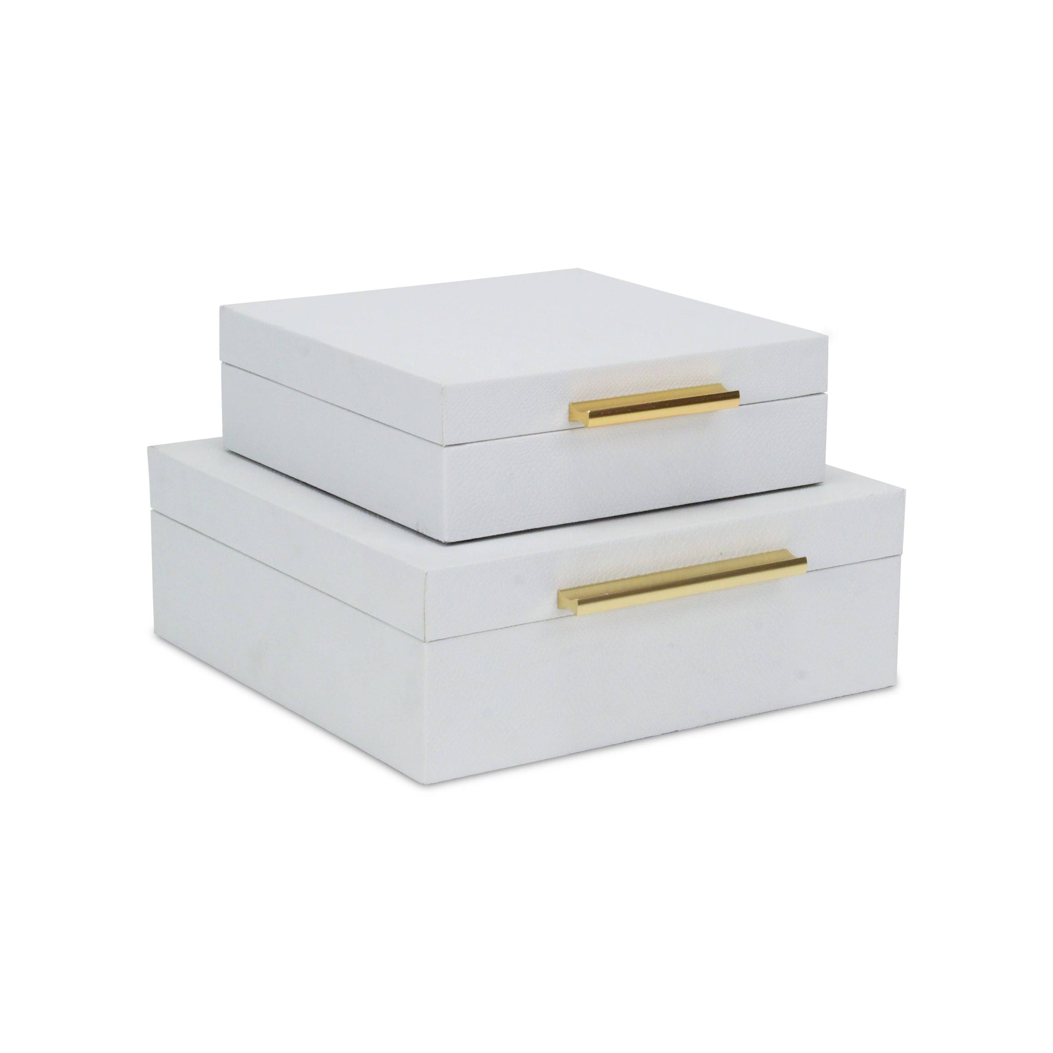 A modern study in texture and elegance, the Asher collection gives quiet luxury to any space. Each box is entirely handmade, wrapped in a soft faux snakeskin finish that adds depth and sophistication. The crisp white body is beautifully contrasted by a sleek gold handle, giving the set a refined, contemporary edge. Perfect for styling on consoles, coffee tables, vanities, or shelves, these boxes offer both beauty and purpose. A chic way to store keepsakes, jewelry, remotes, or everyday essentials.