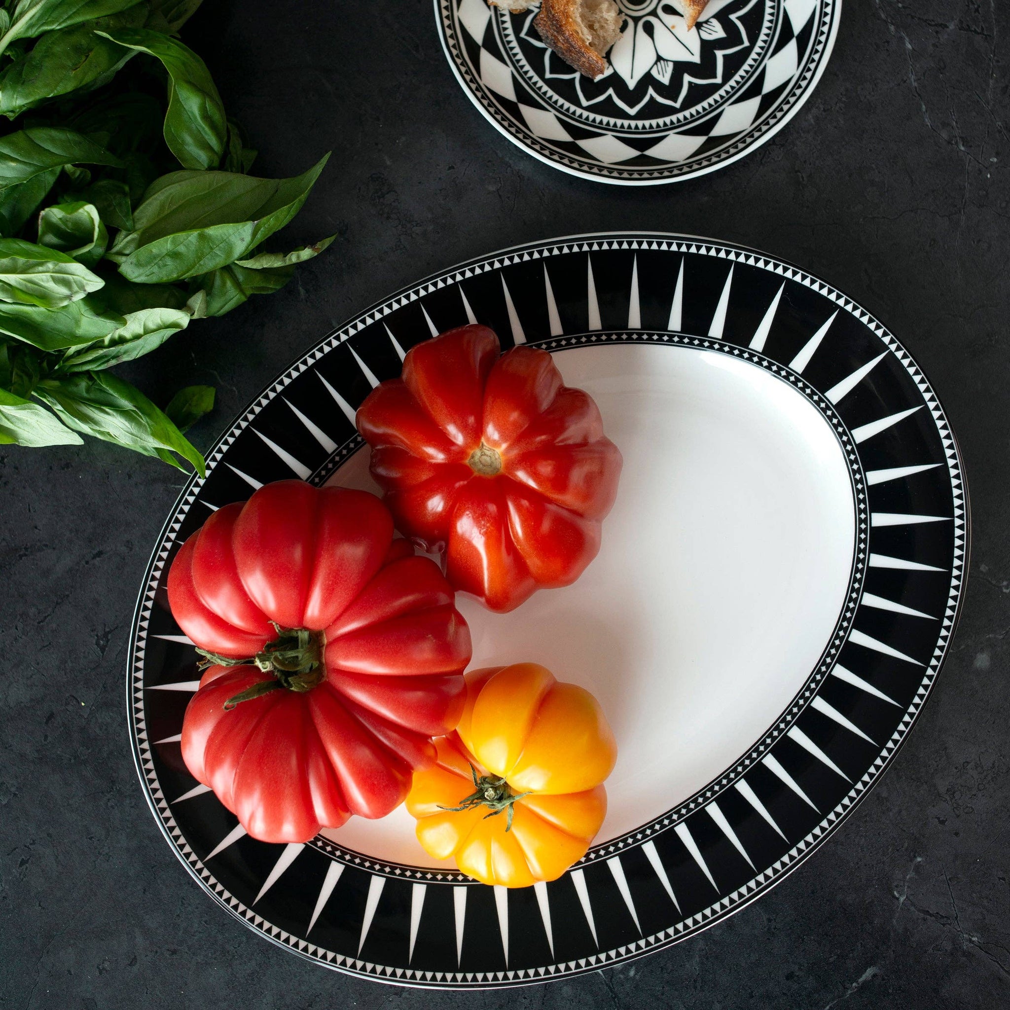 Marrakech draws inspiration from the markets of Morocco and the bold patterns of the beautiful ceramics piled high. Refined by a love of Art Deco forms, Marrakech offers a uniquely elegant, graphic frame for beautiful food.