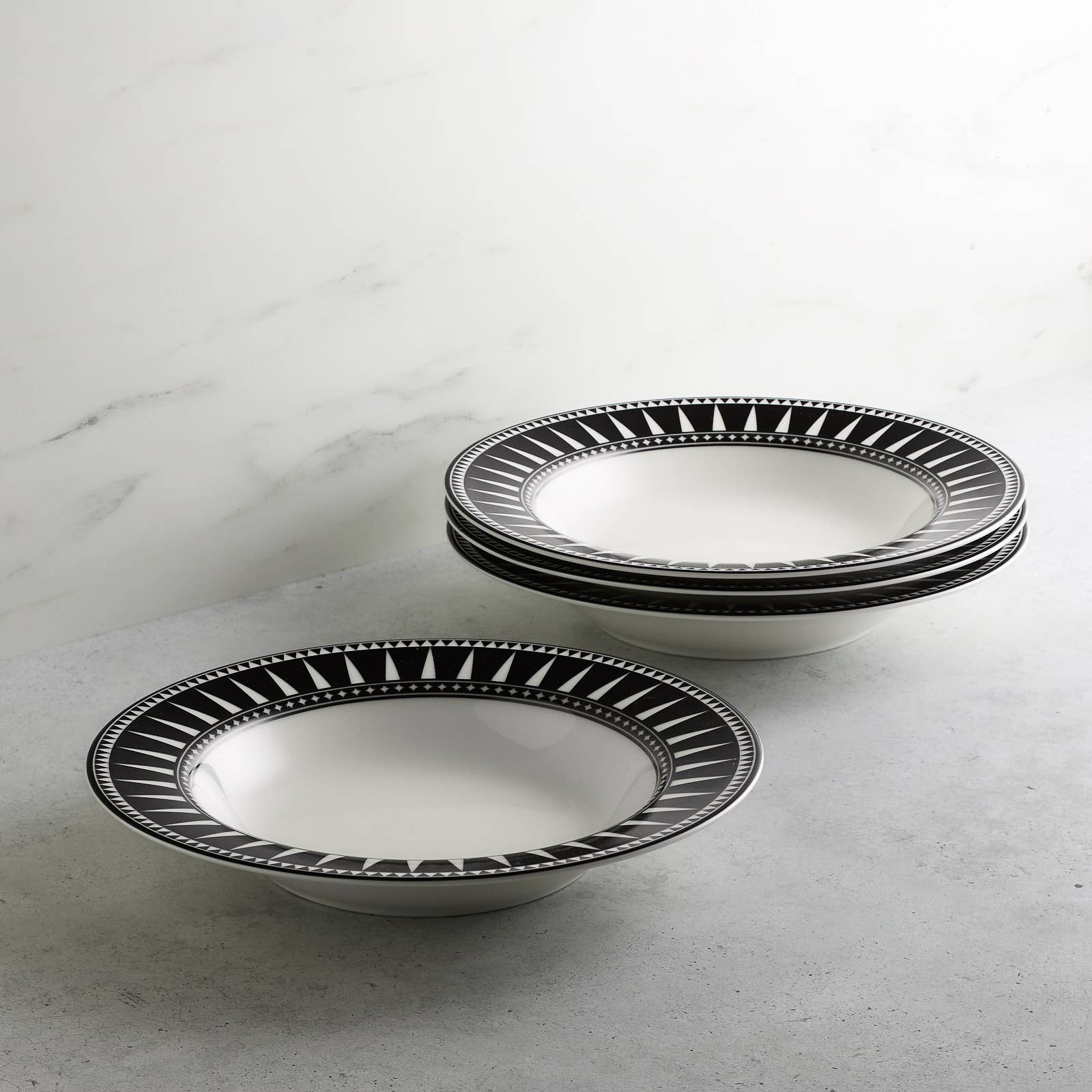 Marrakech draws inspiration from the markets of Morocco and the bold patterns of the beautiful ceramics piled high. Refined by a love of Art Deco forms, Marrakech offers a uniquely elegant, graphic frame for beautiful food. Like a ray of sunshine this rimmed soup bowl exudes an optimistic attitude towards whatever you're serving up!